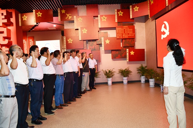 在院黨委書(shū)記韓勛來(lái)的帶領(lǐng)下,先后參觀(guān)了“悟初心、守初心、踐初心”三個(gè)主題展廳,認真聆聽(tīng)老一輩無(wú)產(chǎn)階級革命家的戰斗歷程和感人故事,重溫了大別山區的紅色革命歷史。一幅幅老照片,一件件展品,一個(gè)個(gè)故事,詮釋了大別山精神和共產(chǎn)黨人的初心。大家懷著(zhù)對先烈的敬仰之情,高舉右手,重溫了入黨誓詞,表明了不忘初心,牢記使命,砥礪前行的決心。