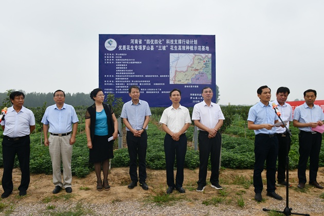 8月8日,由省農科院、我院和羅山縣人民政府主辦,羅山縣花生產(chǎn)業(yè)發(fā)展辦公室、羅山縣農科所承辦的河南省“四優(yōu)四化”科技支撐行動(dòng)計劃 “三坡”花生高效種植模式現場(chǎng)觀(guān)摩暨產(chǎn)業(yè)發(fā)展研討會(huì )在羅山縣召開(kāi)。省農科院副院長(cháng)衛文星,省農業(yè)農村廳經(jīng)作處處長(cháng)胡旭云、經(jīng)作站站長(cháng)鄭乃福,我院院長(cháng)段仁周,羅山縣縣長(cháng)汪明君等出席會(huì )議。